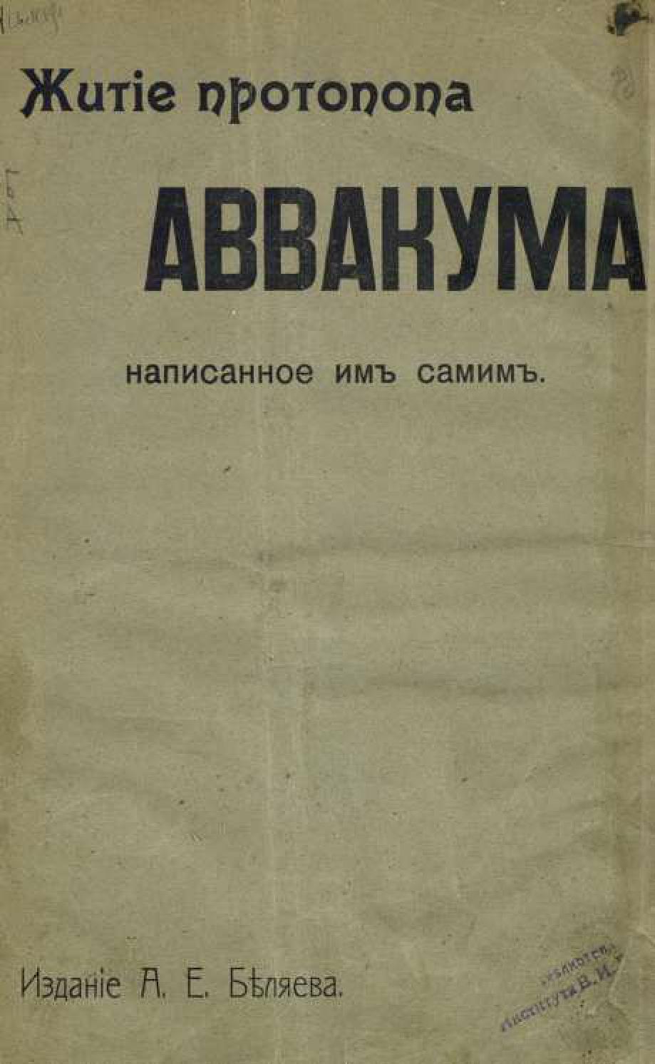 Житие протопопа Аввакума, написанное им самим