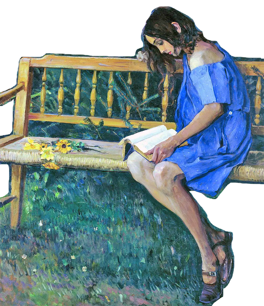 М. В. Нестеров. Наташа Нестерова на садовой скамейке. 1914