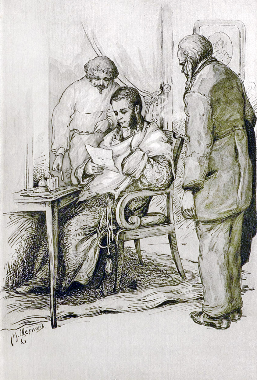 А. С. Пушкин в Михайловском читает свое новое произведение И. И. Пущину. С картины Н. Н. Ге. 1875