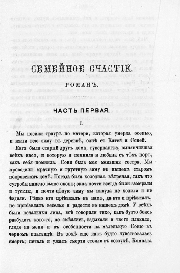 Различные варианты семейной жизни оказались в поле зрения писателей XIX века. Вспомним: пьеса Ф. И. Фонвизина «Недоросль», роман И. А. Гончарова «Обломов», роман-эпопея Л. Н. Толстого «Война и мир»…